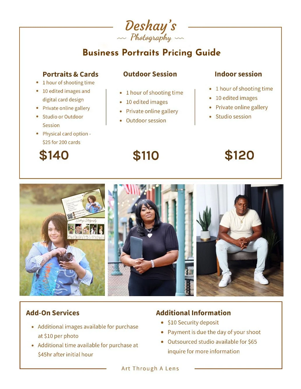 Elevate your professional image with a one-hour session, 10 edited images, and a private gallery. Perfect for headshots, branding, or team photos make your business shine!